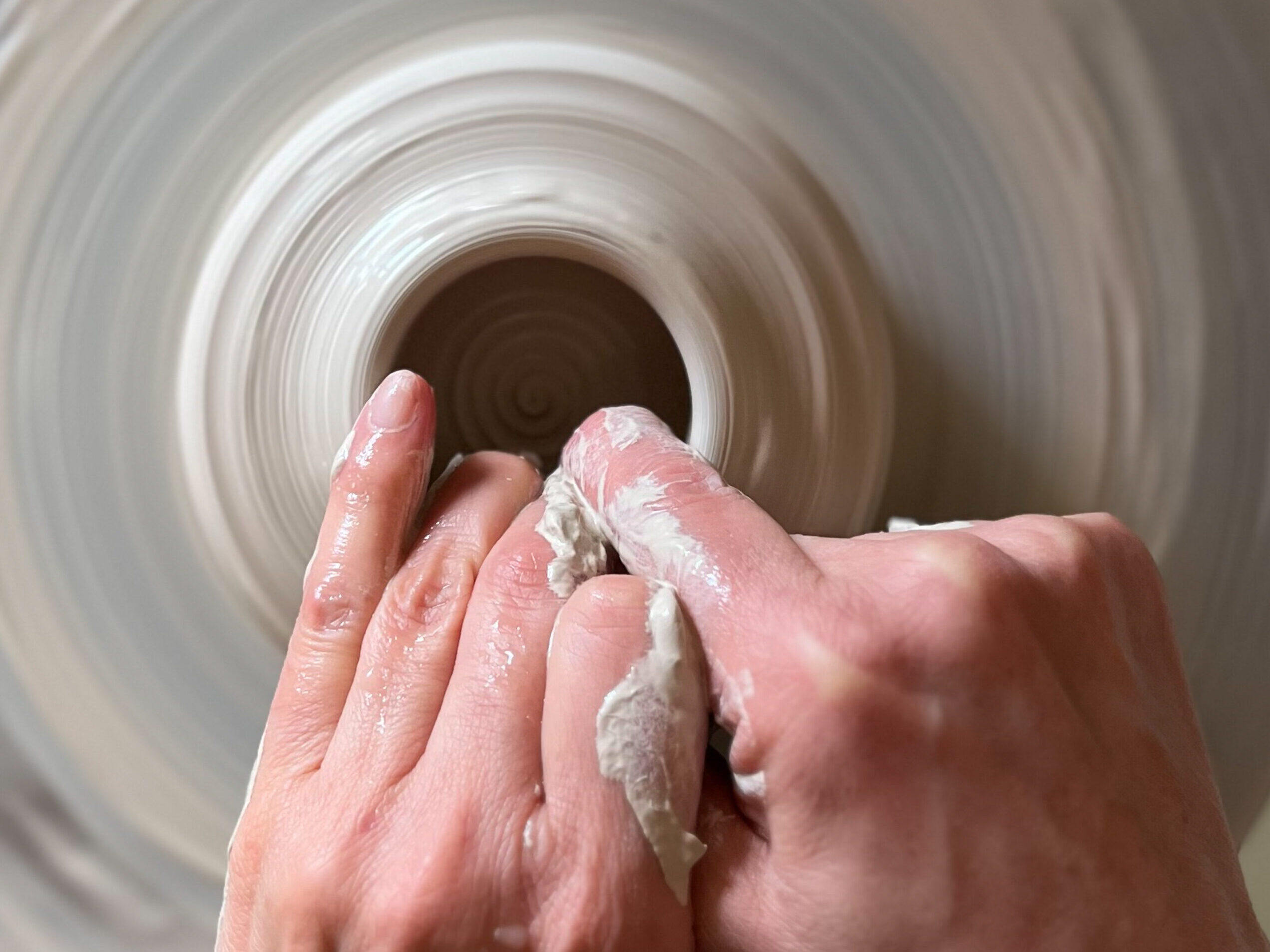 Le tournage consiste à façonner l’argile sur un tour en rotation. Par le geste, la pression des mains et le contrôle de la matière, l’argile est centrée, montée et affinée pour créer des formes équilibrées et harmonieuses.